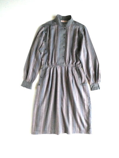 ・80’s スナップボタングレーストライプワンピース in-stock