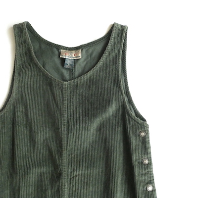 ・90’s〜モスグリーン太畝コーデュロイジャンパースカート in-stock