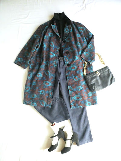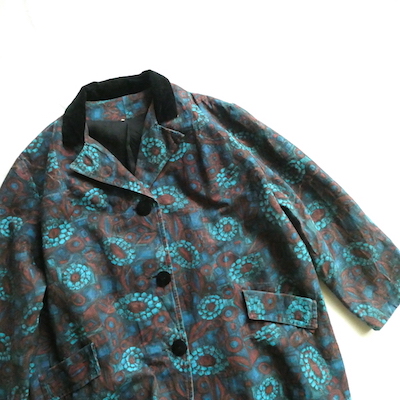 ・50〜60’s ブラックベロア襟花柄コート in-stock