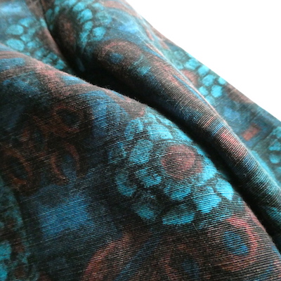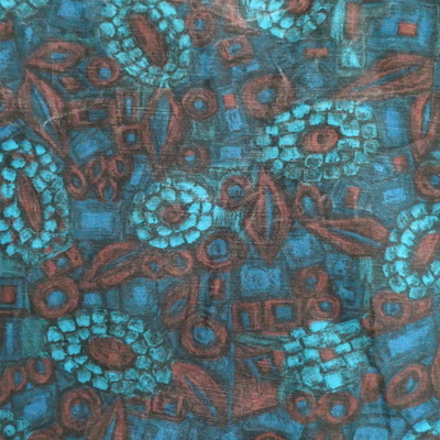 明るめのシアン系ブルーが印象的な独特な雰囲気の花柄
