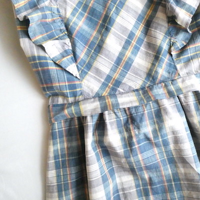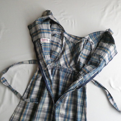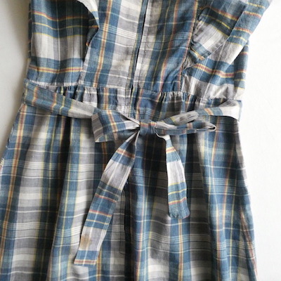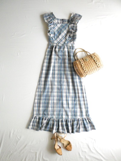 ・70’s ブルーチェックマキシ丈エプロンドレス in-stock