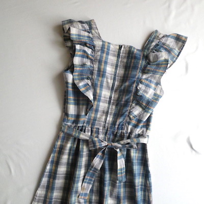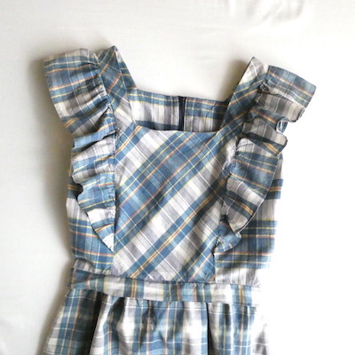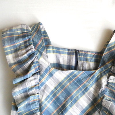 肩と裾には共布のラッフルが付きます