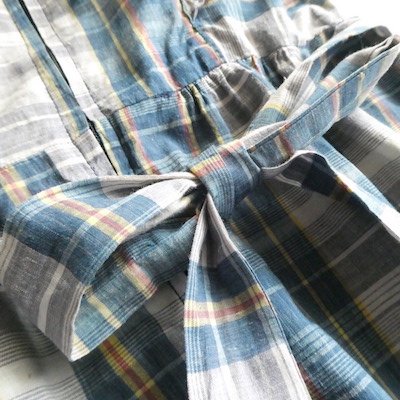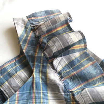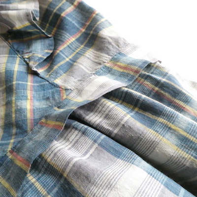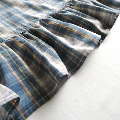 ブルー系チェックの薄手コットン生地