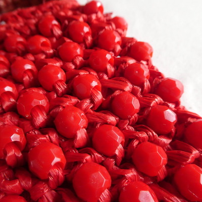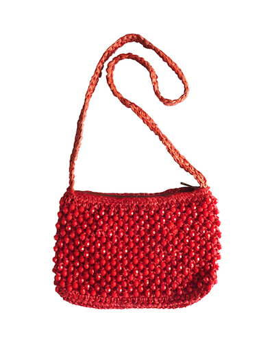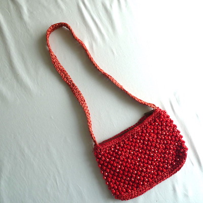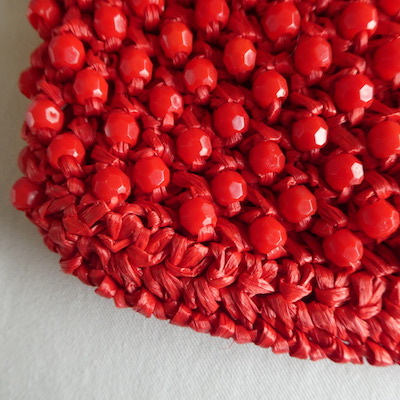 ・70’s ビーズクロシェ赤ミニショルダーバッグ in-stock