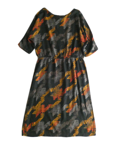 ・70’s オレンジグレー5部袖柄ワンピース in-stock