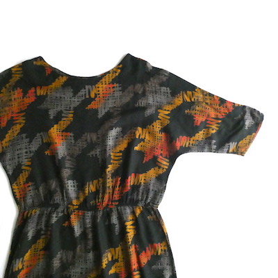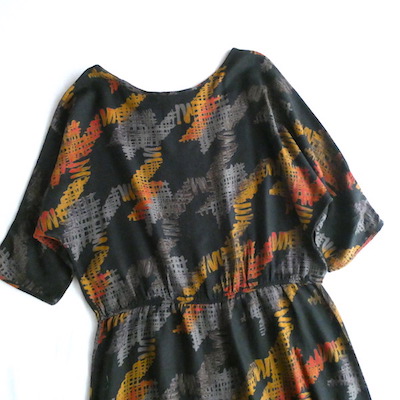 70’s orange gray pattern black dress