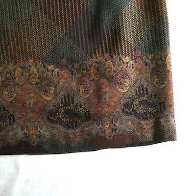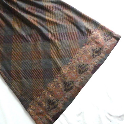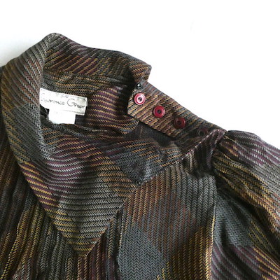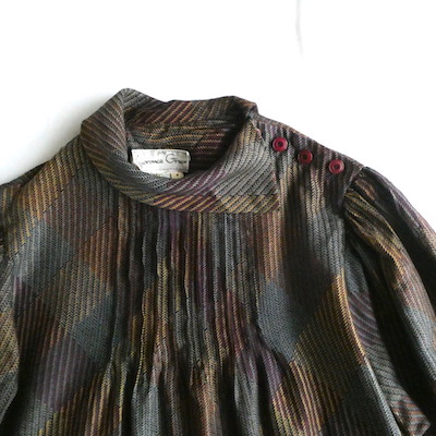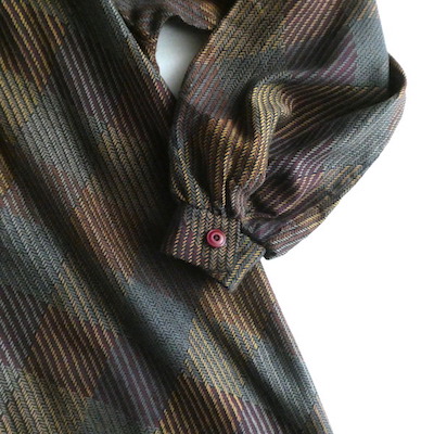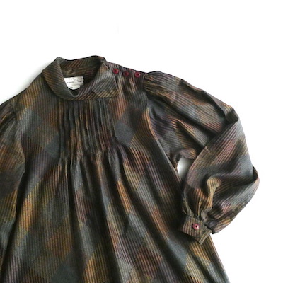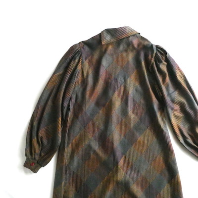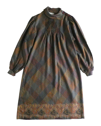 ・70’s パフスリーブブラウン柄ワンピース in-stock