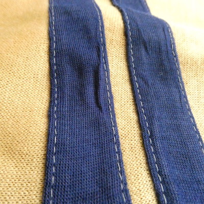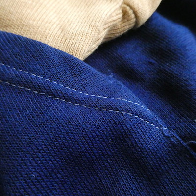 襟と袖リブ部分は黒グレーの混じり糸
