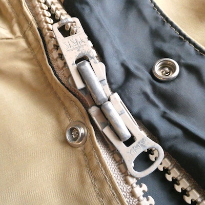 ジップアップにスナップボタン留めで