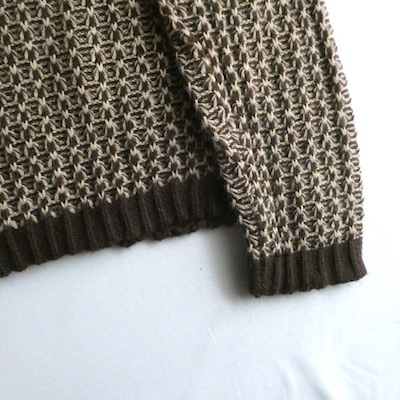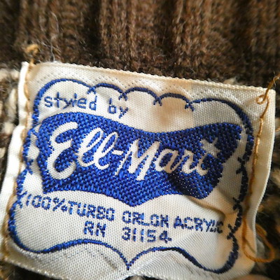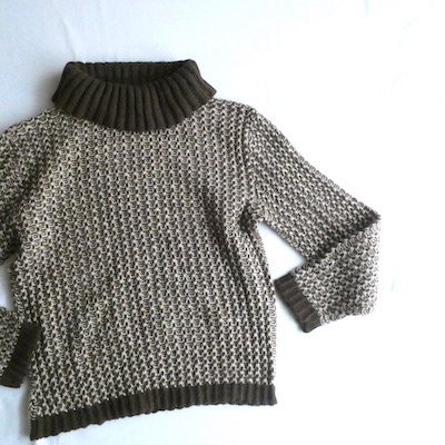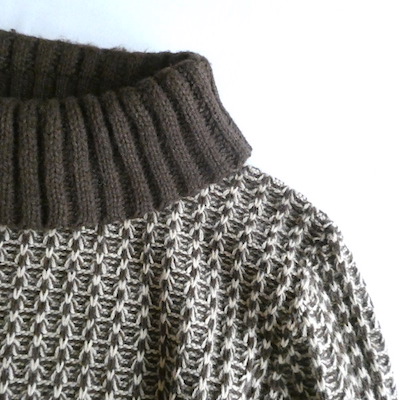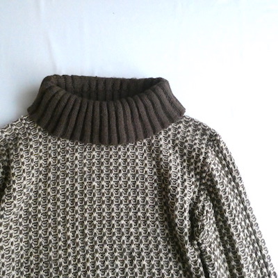 ・60~70’s ブラウンベージュタートルネック柄ニット in-stock