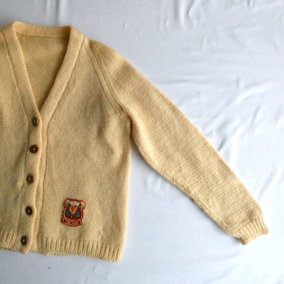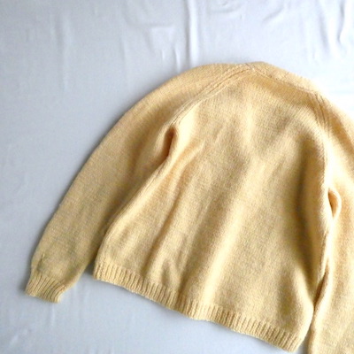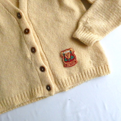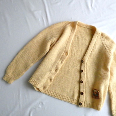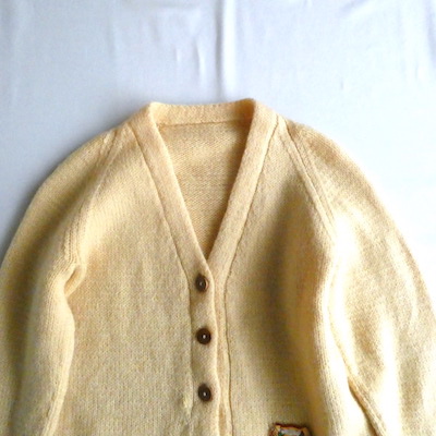 ・60~70’s パステルイエローパッチ付きニットカーディガン in-stock