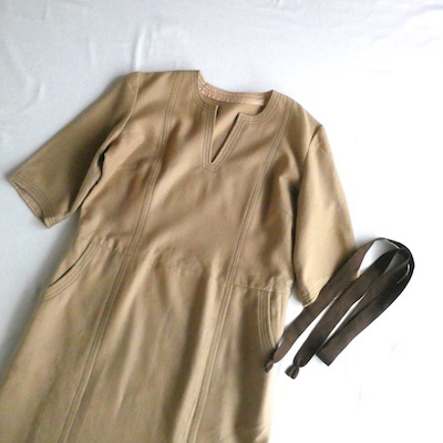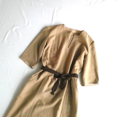 ・70’s キャメル×ブラウンステッチワンピース in-stock