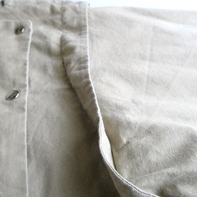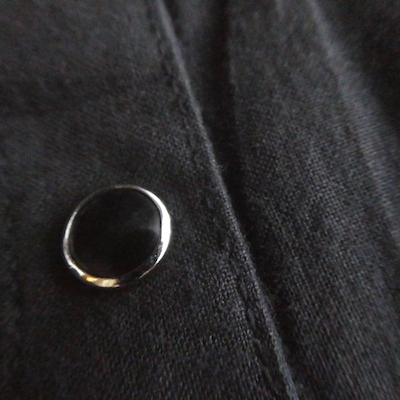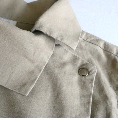 スナップボタン留めのアシメントリーデザインで