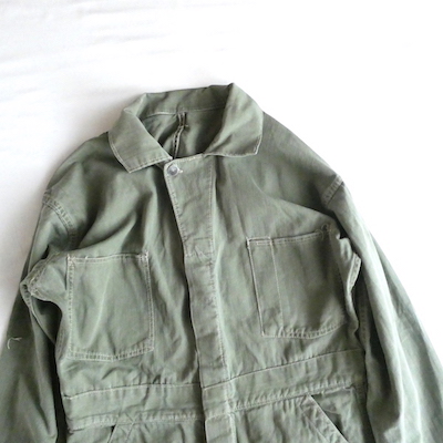 ・40~50’s カーキグリーンヘリンボーンツイルオールインワン in-stock